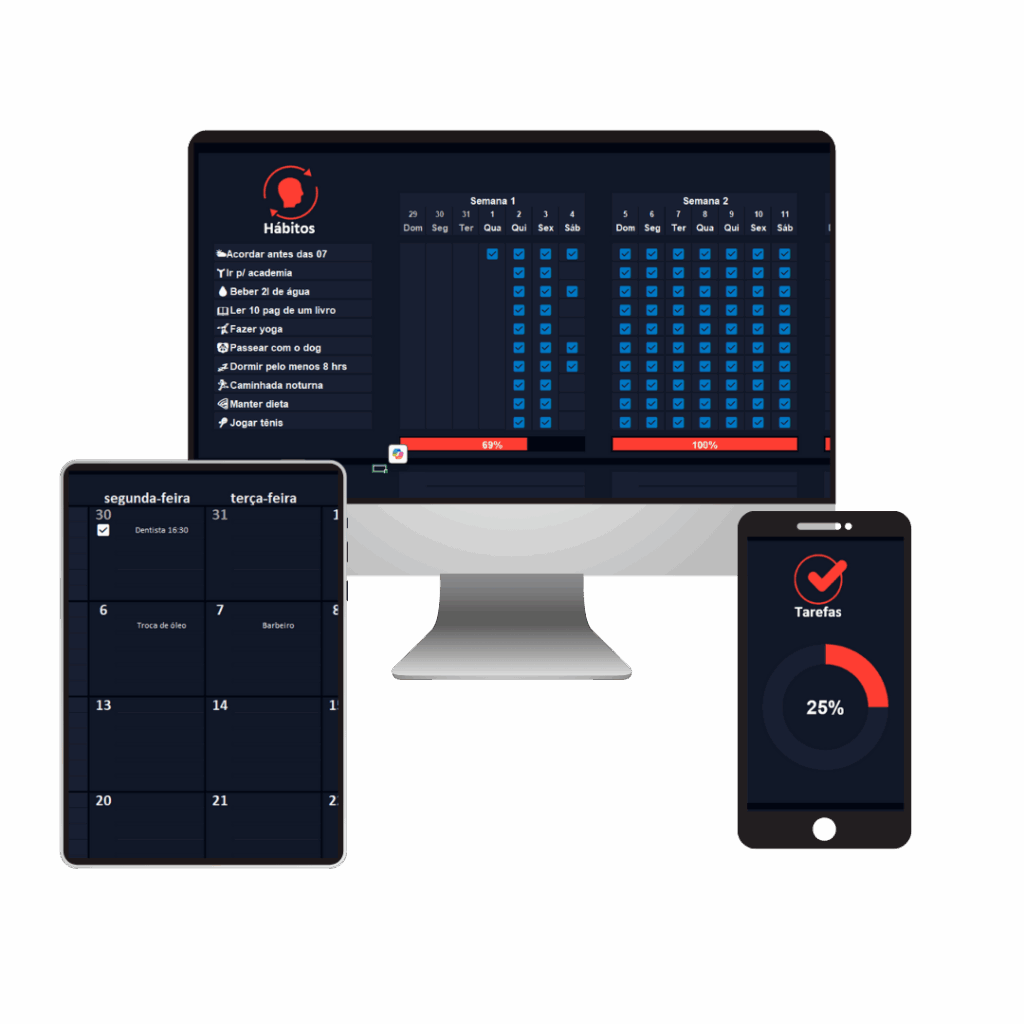 Organize seus dias, alcance seus objetivos e mantenha seus hábitos saudáveis com uma planilha intuitiva, editável e poderosa.